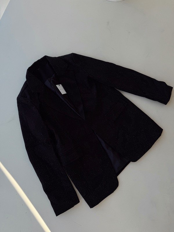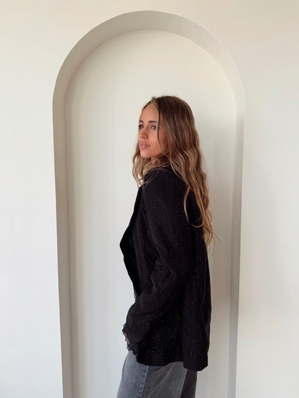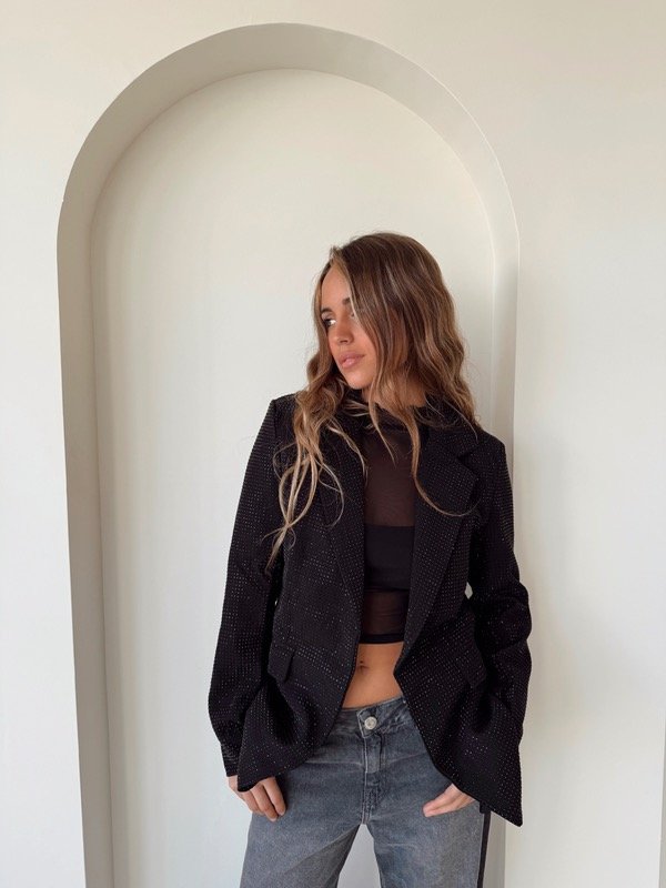 BLAZER 95% POLIESTER, 5% SPANDEX. CON FORRERÍA. CON HOTFIX EN FRENTE Y ESPALDA. BOLSILLOS DELANTEROS FALSOS CON SOLAPA.