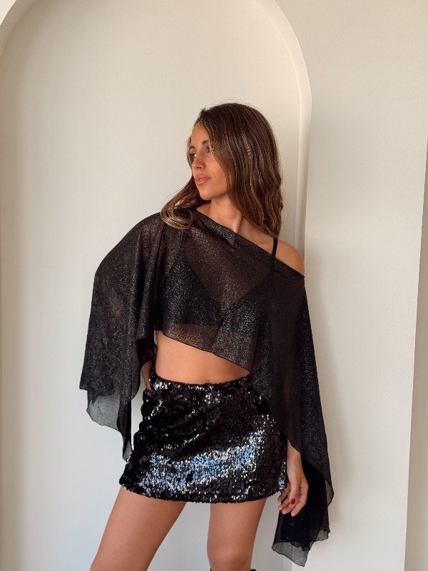 Top tipo capa de microtul con brillitos se puede usar de varias formas talle único