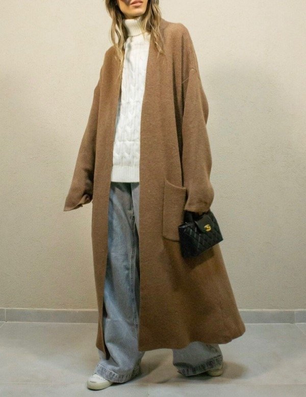 Cardigan tipo kimono largo de bremer súper canchero y calentito talle único con bolsillos