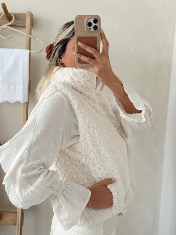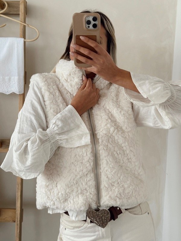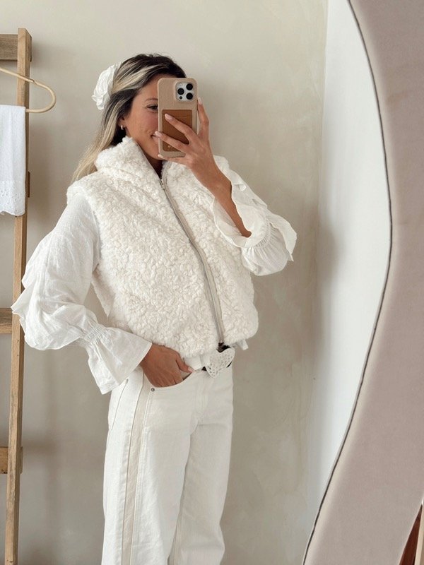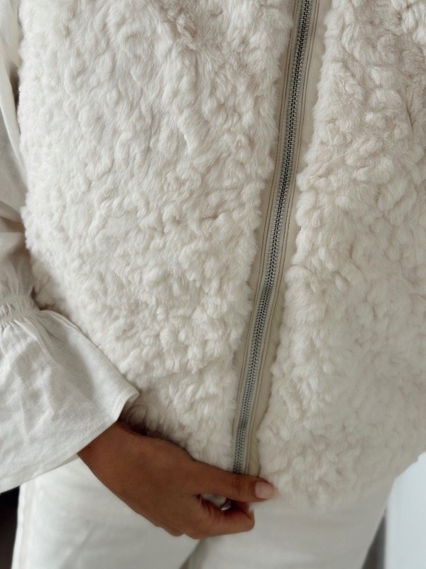 Chaleco de corderito sintético forrado en su interior con cierre y bolsillos talle único