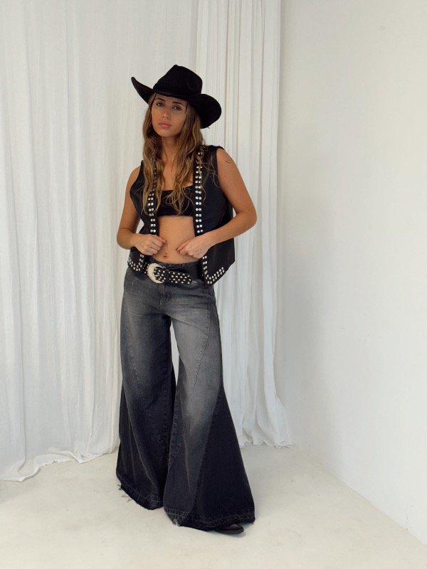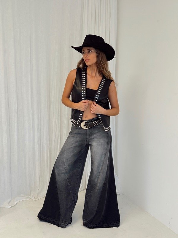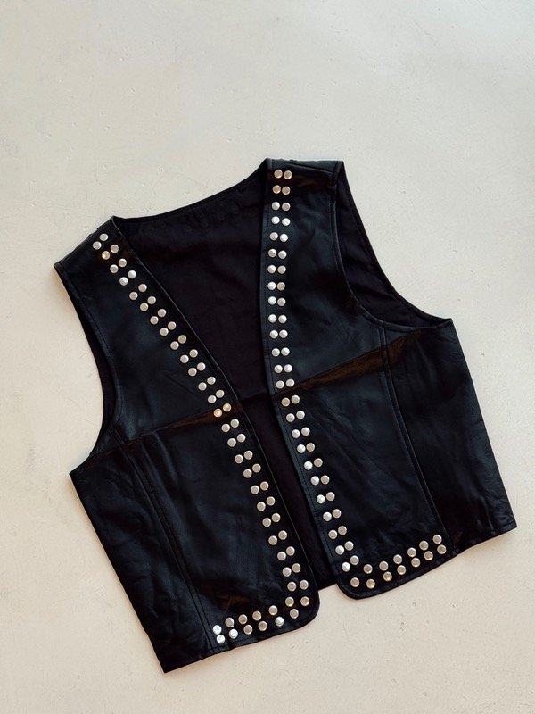 Chaleco de eco cuero forrado con tachas