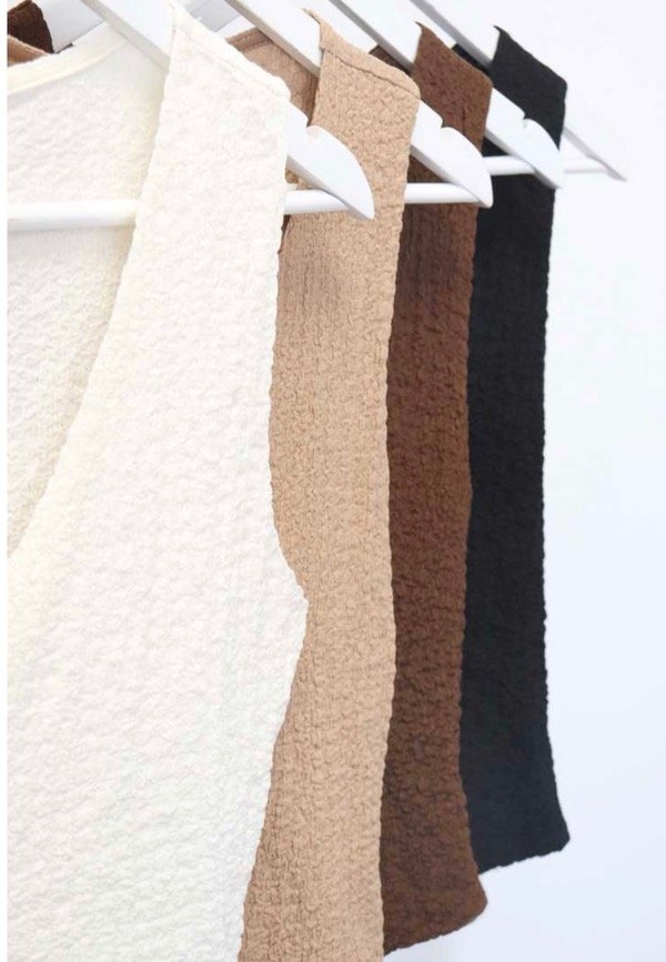 CHALECO DE BAMBULA 97% POLIESTER, 3% SPANDEX. CON FORRERÍA EN EL FRENTE. ESCOTE EN V Y CIERRE FRONTAL CON BOTONES EN FORMA DE FLOR.