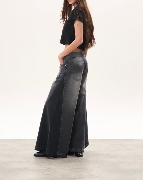 Jean corte mega WIDE LEG (bien ancho) sin spandex color negro/ gris gastado