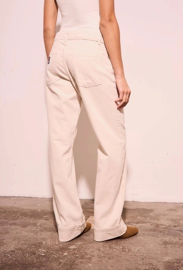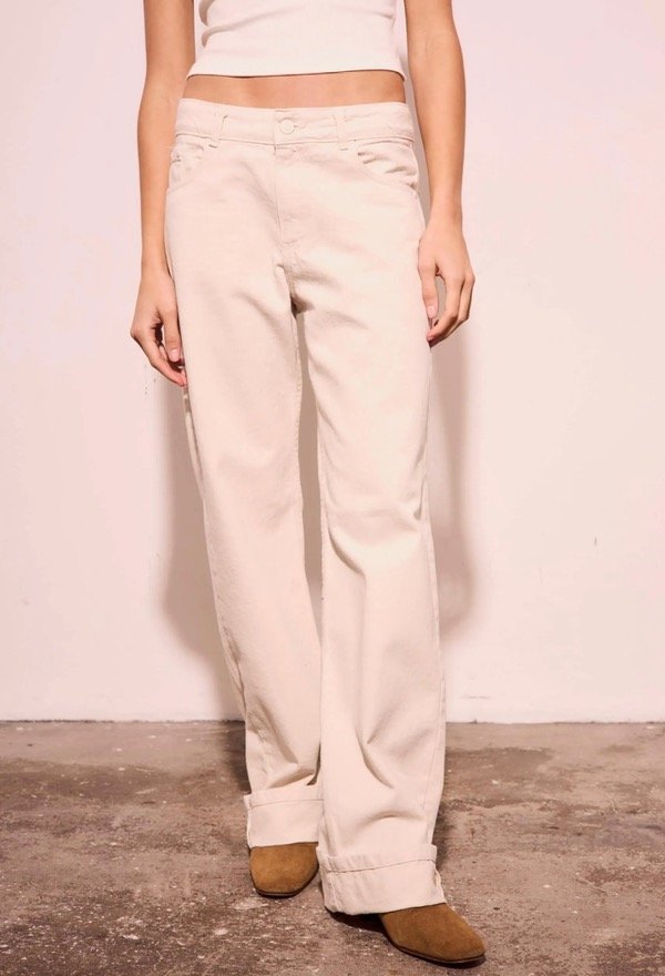 Jean corte semi WIDE LEG ( es menos anchos ) con doblez en bota manga