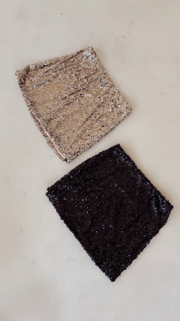 Pollera corta de lentejuelas con forreria interna y elástico en la cintura talle único