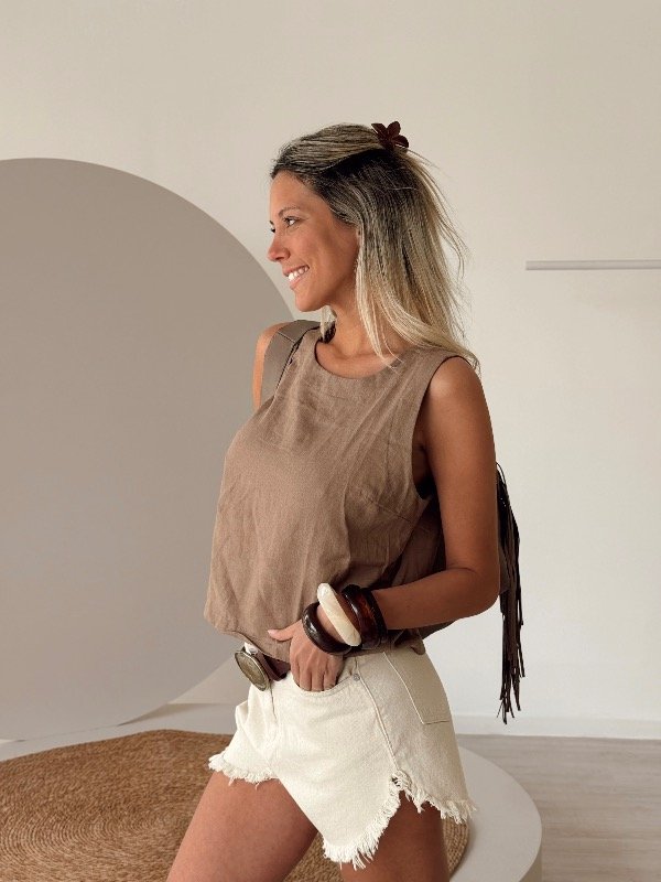 Short de Jean color natural con desflecado