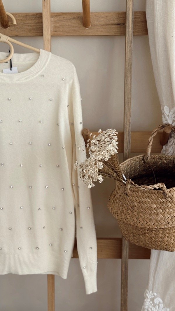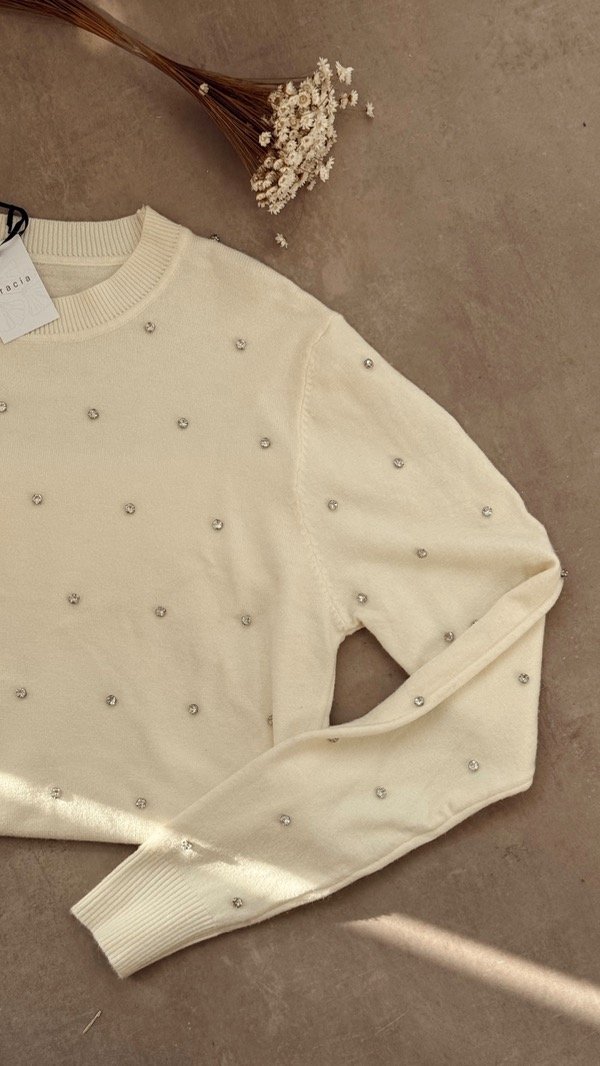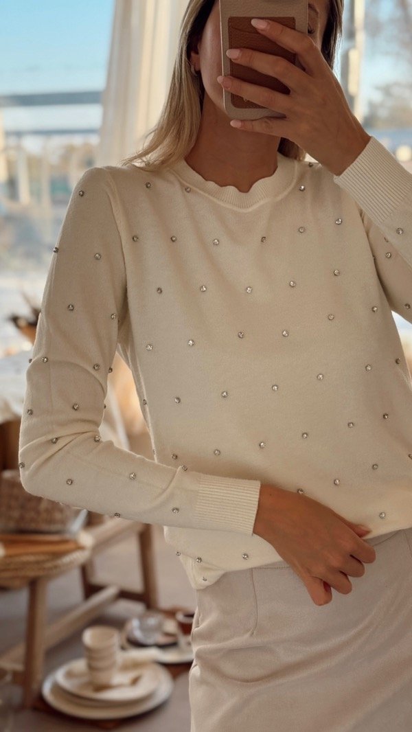 Sweater de Bremer con piedritas de Strass y cuello a la base talle único