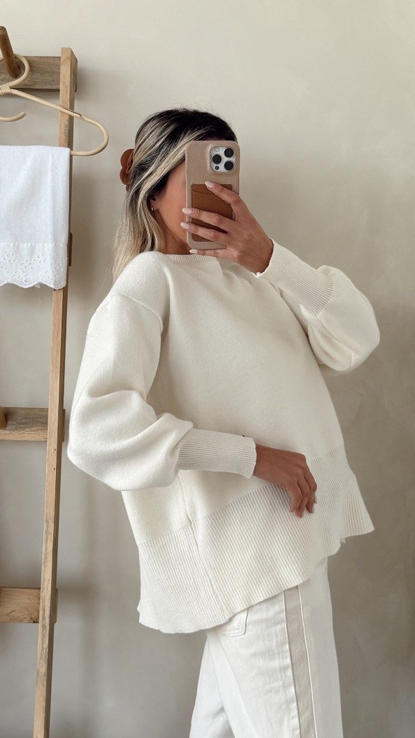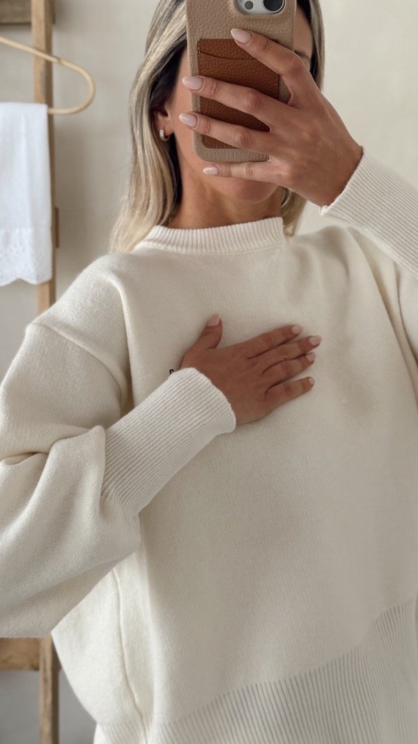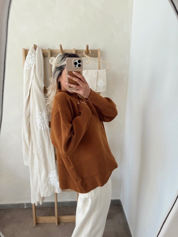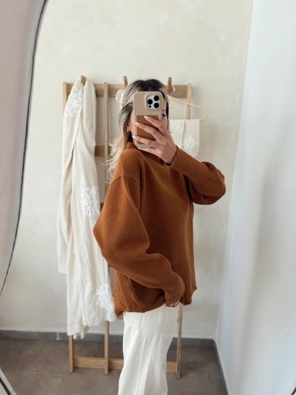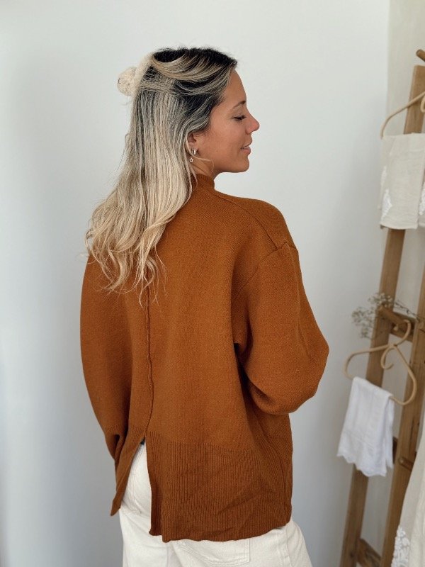 SWEATER CUELLO MEDIA POLERA TALLE ÚNICO CON DETALLE DE LÍNEA EN LA ESPALDA